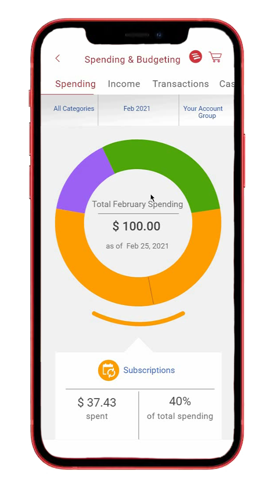 Kathy hit the track spending option in the dashboard to check the total amount spent on subscriptions in a month.