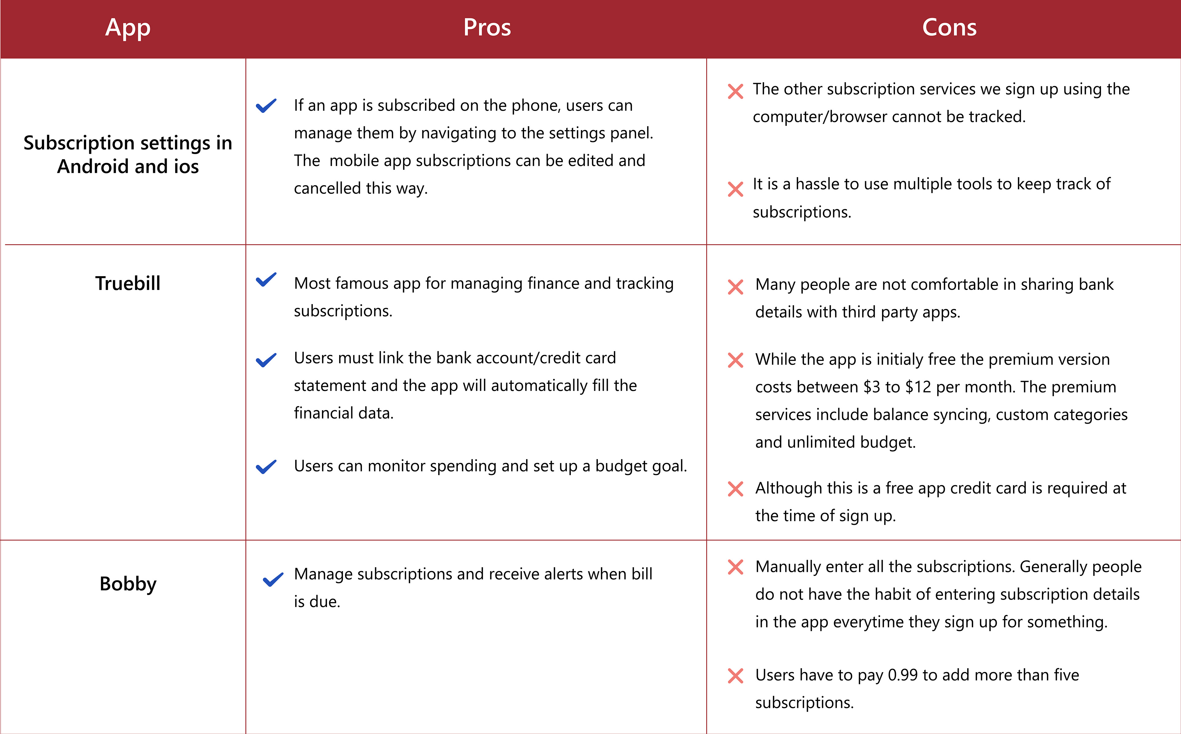 I analyzed popular apps like TrueBill and Bobby. While well-designed, they lacked: