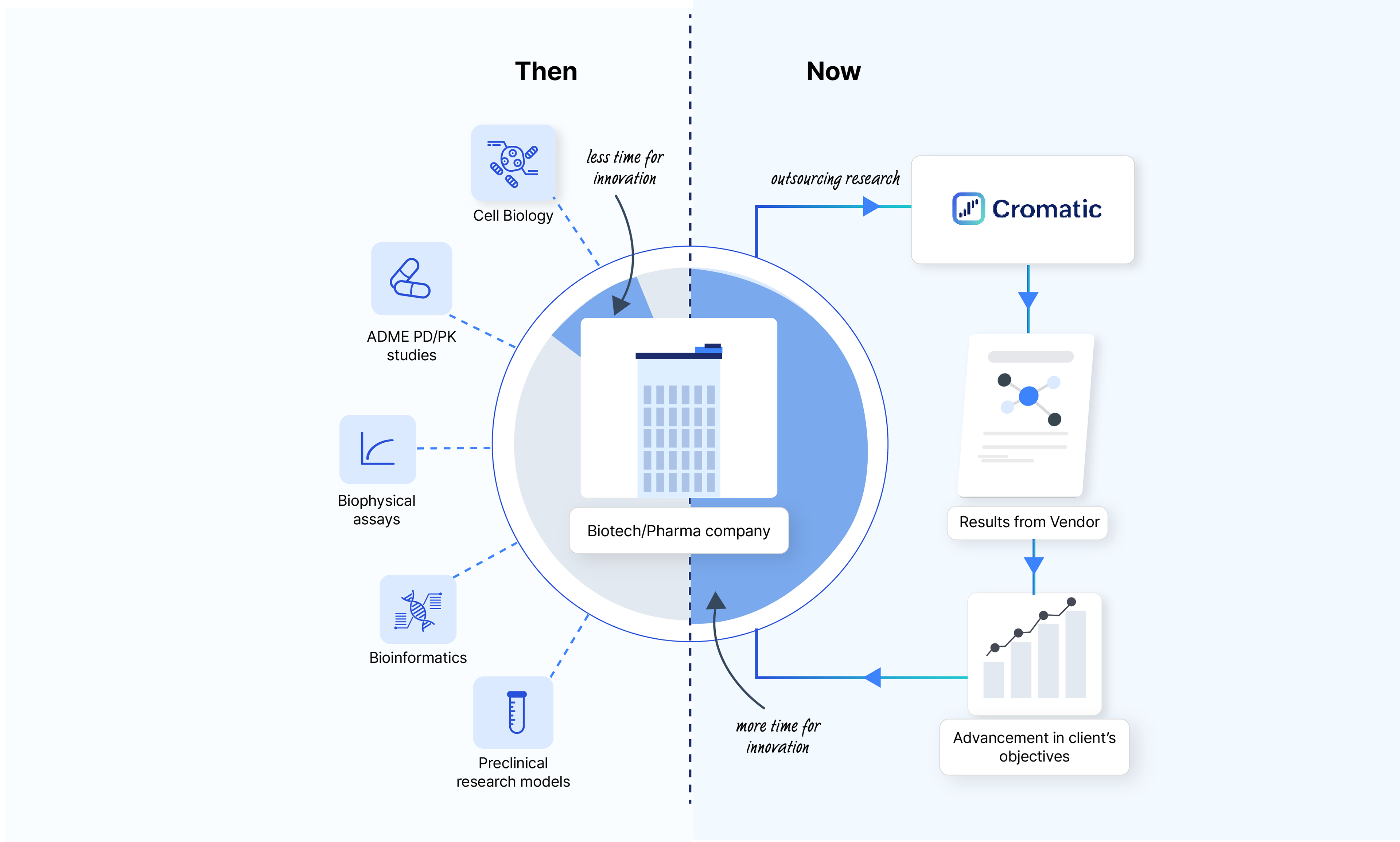 biotech/pharma → outsourcing tasks → vendor execution → results returning to the client. This preserved conceptual understanding without revealing any confidential mechanics.