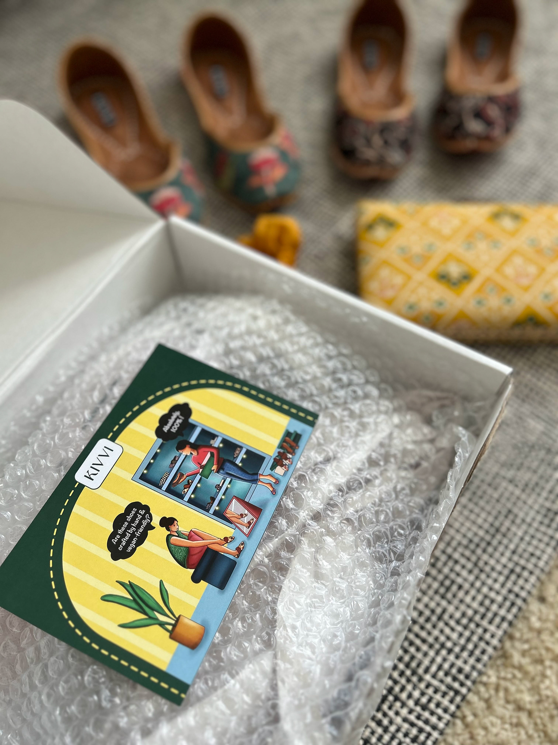 A close friend and founder of Kivvi Shoes, a handmade shoe business in the Bay Area, sought help with branding and retaining repeat customers. After six years in India, she had recently launched her brand in the U.S. Our goal was to create a marketing tool that would not only showcase her brand’s story but also serve as a memorable keepsake