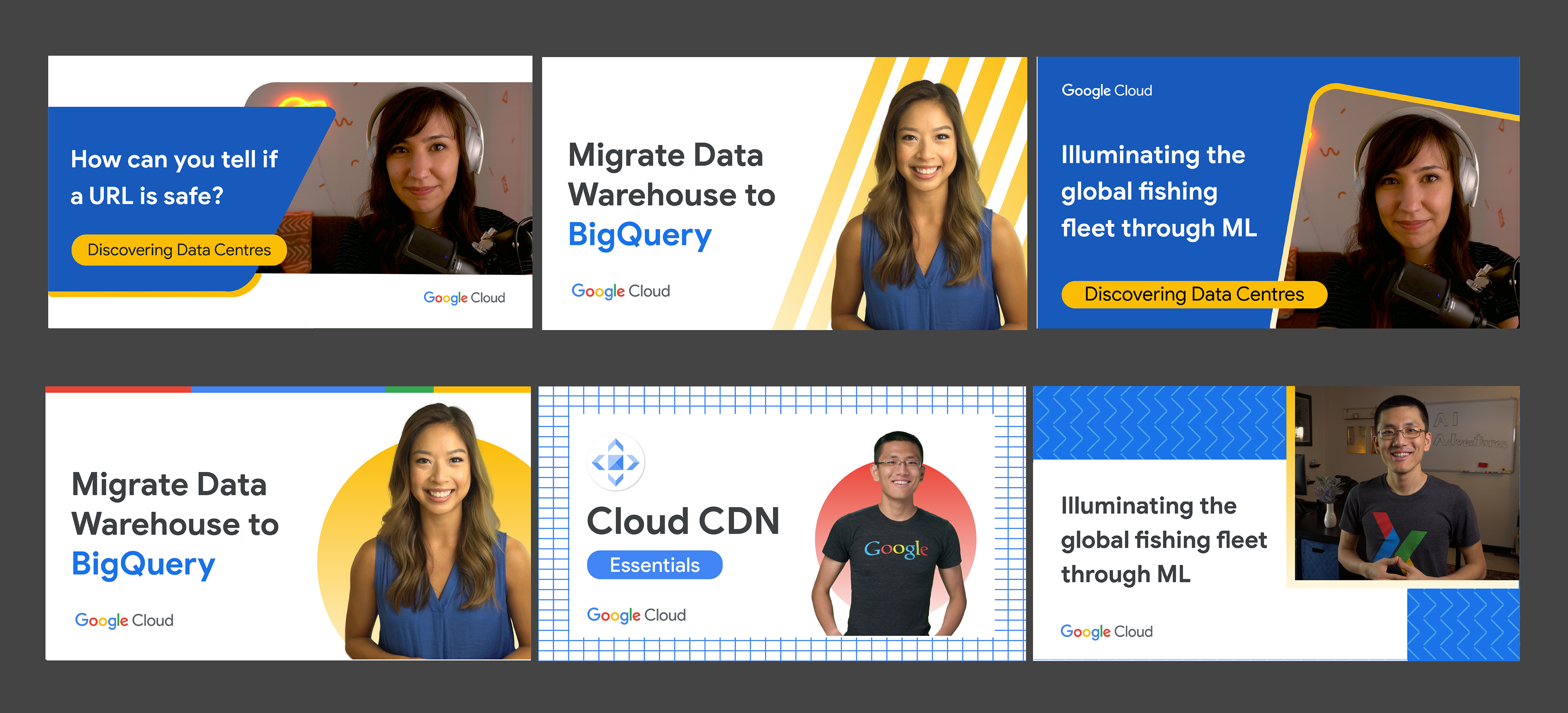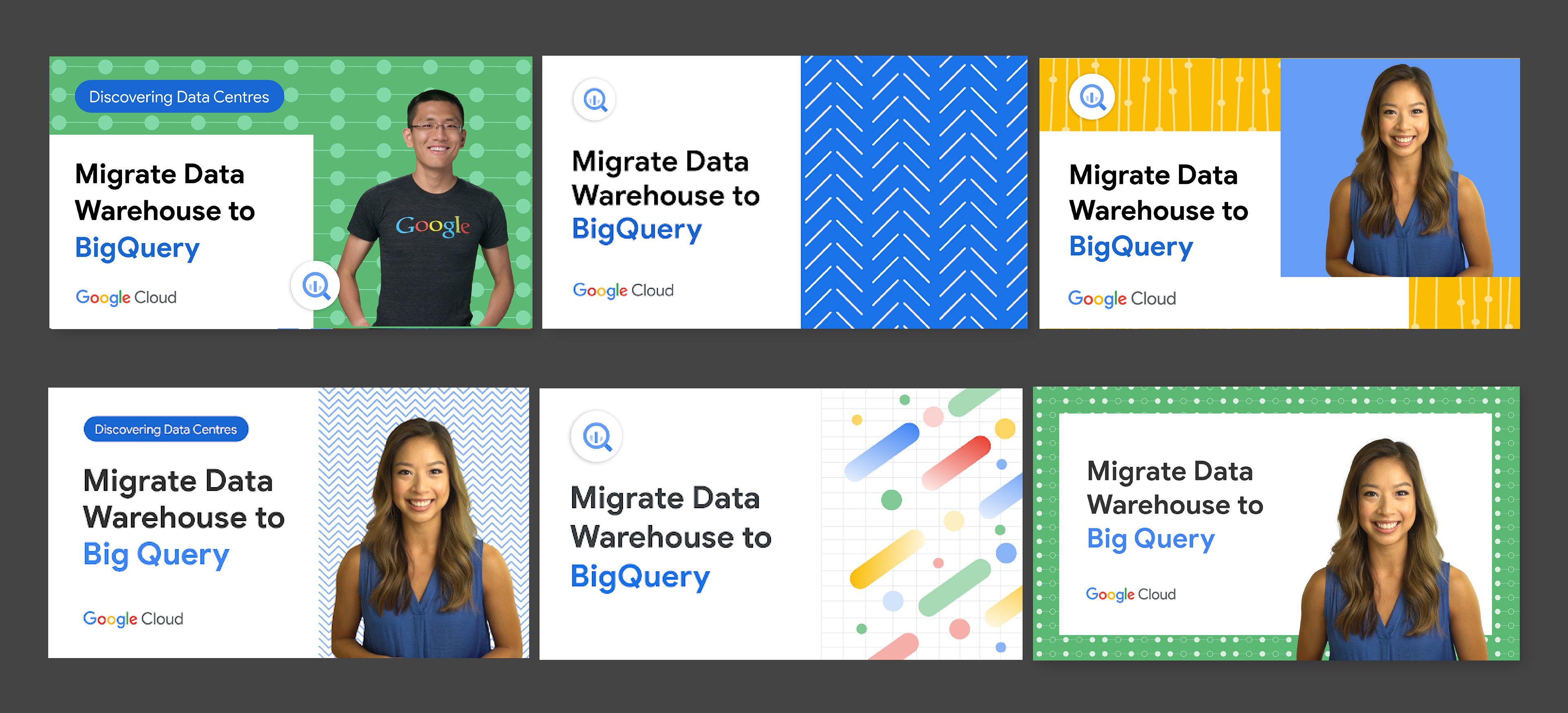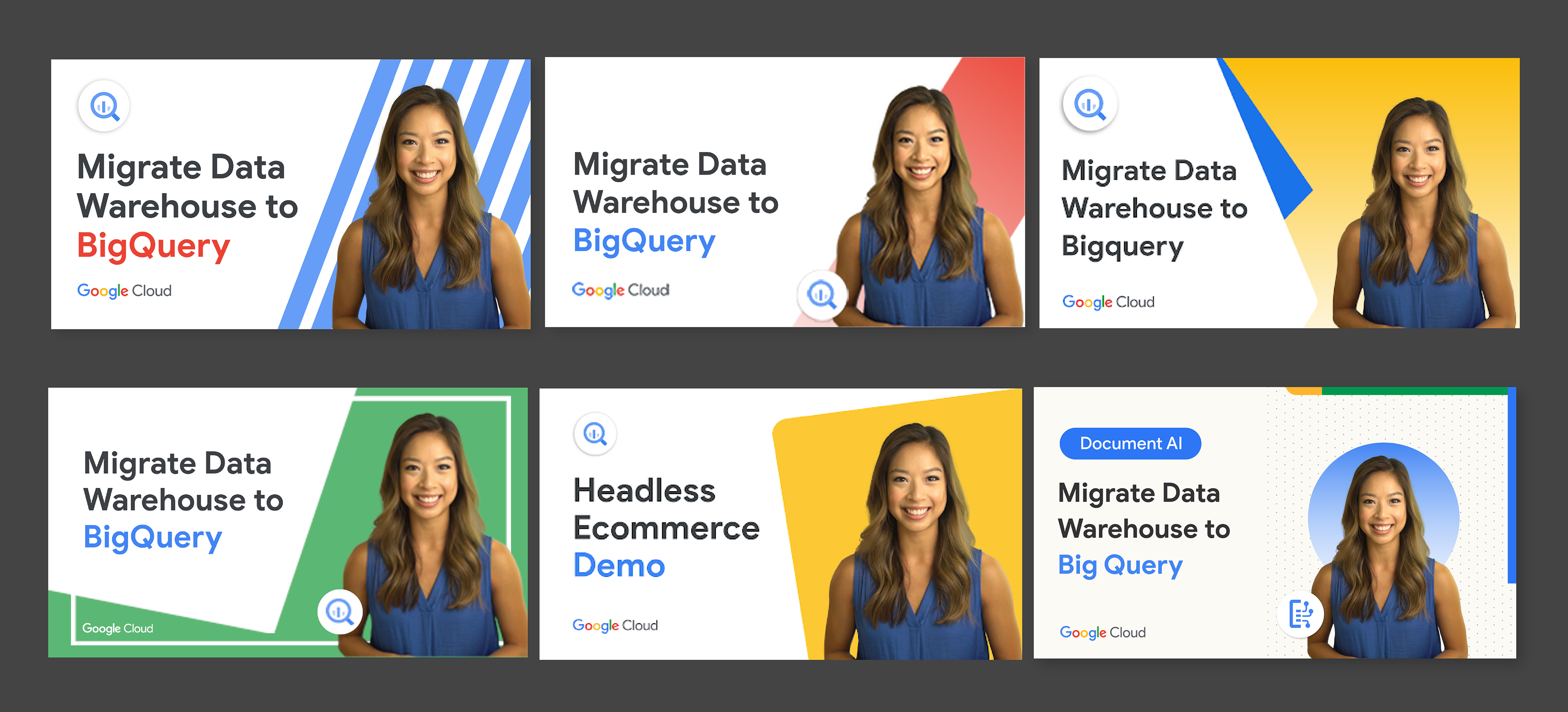 With a solid understanding of what worked, we built a foundational template structure. Design elements and colors could be easily swapped to create diverse templates. Additionally, the iconic Google color palette offered a weekly rotation option for series thumbnails.