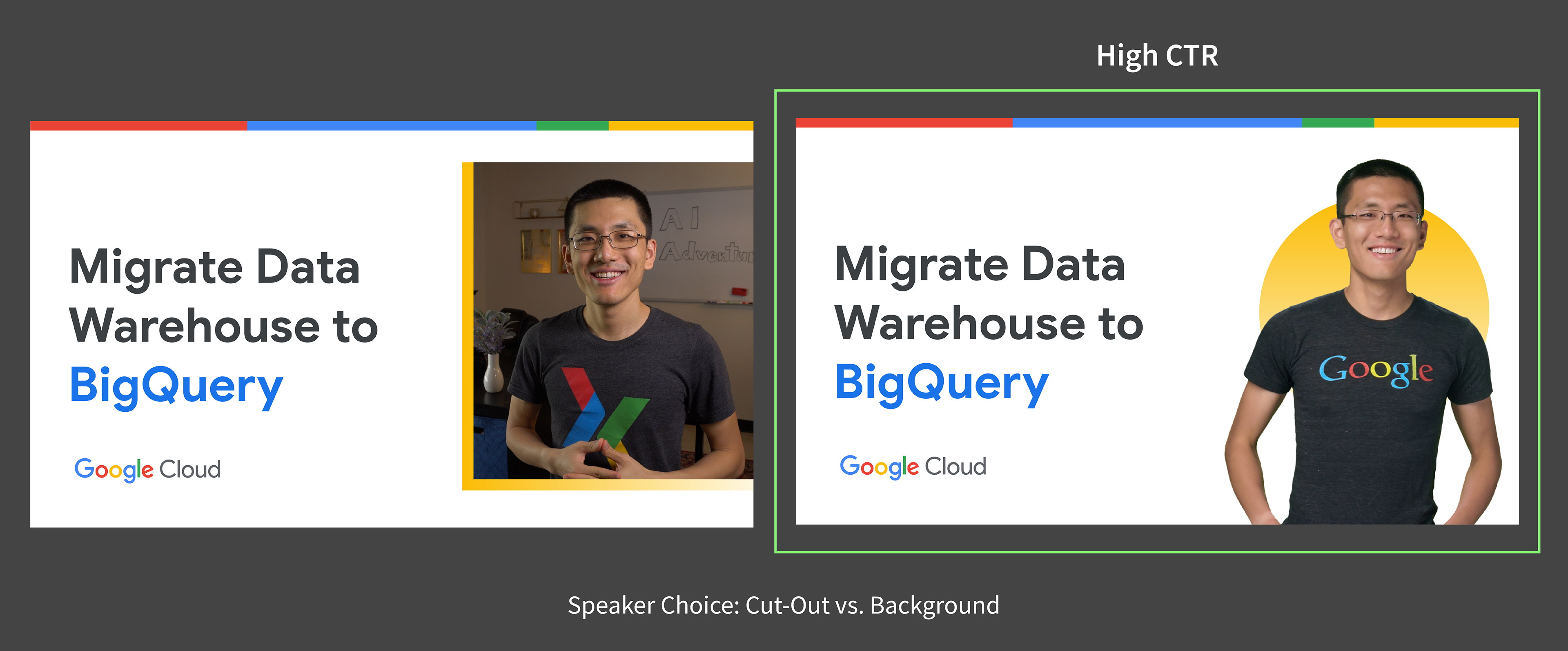 A/B testing confirmed the hypothesis – clean speaker cut-outs performed better, leading to CTR increase.