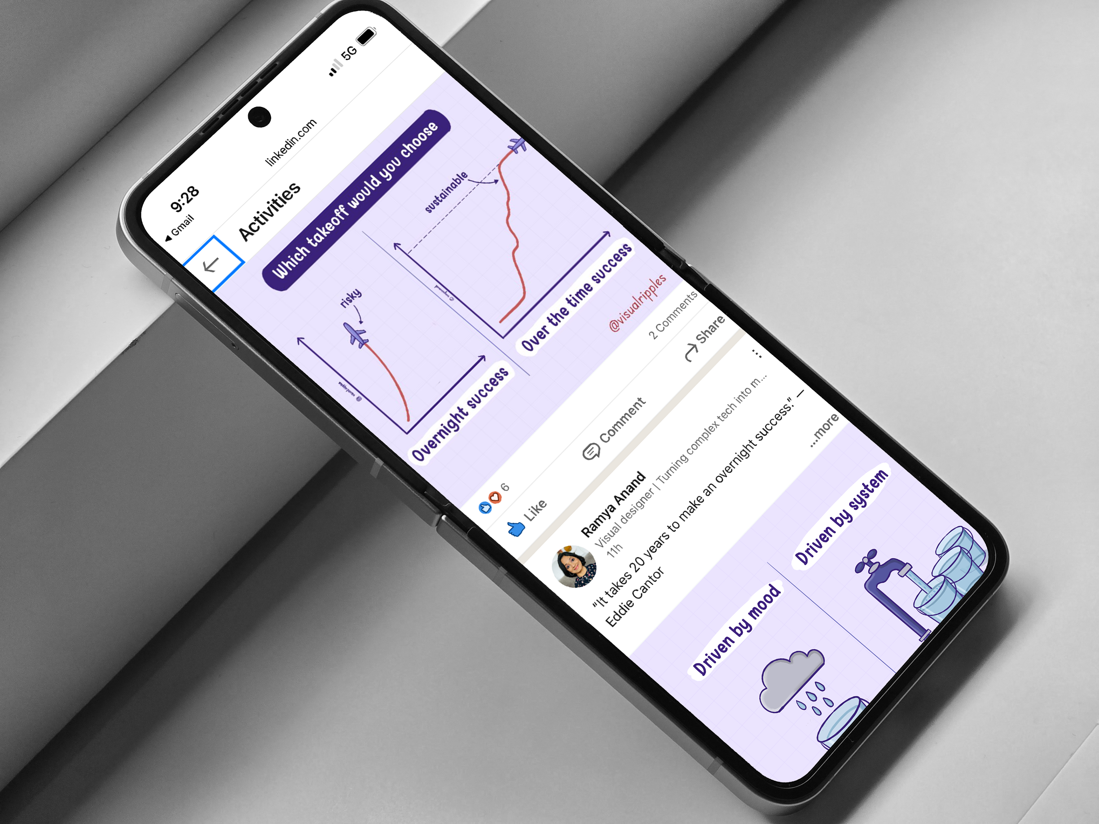 What began as creative therapy during early motherhood quickly grew into Visualripples — a weekly series of simple illustrations that turn complex thoughts and emotions into clear, memorable visuals.